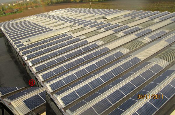 Località: Solesino (PD) Intervento: Impianti integrati su tetto Moduli: Ningbo 240 Wp Inverter: Power One Anno: 2011 kWp 97,44 + 69,12